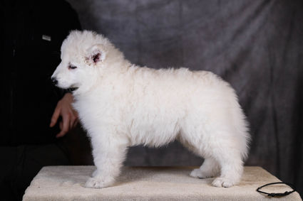 Sire Enzo is Mr. Calm, Cool, and Collected in temperament, while also possessing a good working drive. Enzo has been successful in the show ring, having won multi Reserve Best in Show, multi Best in Show Bred By Exhibitor, and was ranked #7 show White Shepherd in the USA in 2024 after limited showing. Furthermore, he is the only White Swiss Shepherd in the USA that I am aware of to possess IGP Tracking 2 (FPr2) & Obedience 2 (UPr2) titles. Beyond that, he is titled to UKC Rally Obedience Master, NADD Dock Senior, and has passed his Canine Good Citizen test and Socialized Pet Obedience Test. Of course, he is still quite young and his career has really only just begun. Dam Flora is equally accomplished, having earned multiple show champion titles and is, to my knowledge, the only actively breeding IGP1 titled female WSS in the USA.