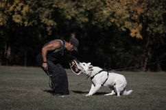 Enzo is our homebred male out of our Furrari and sired by Zorro. His lineage boasts many incredible working and show dogs, with ancestors holding IGP titles, show titles, and even World Winner titles. His grandmother, Born to Win White Almighty, was the first ever White Swiss Shepherd to compete at FCI IPO-FH (tracking) World Championships!
